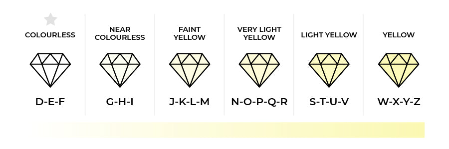 I diamanti in natura esistono di diversi colori che vano dal giallo all'incolore dei diamanti D color che sono la prima qualità assoluta, passando al bianco dei più comuni g-h, fino ad arrivare ad un colore tendente sempre di piu al giallo dei diamanti che hanno meno valore (L-Z)