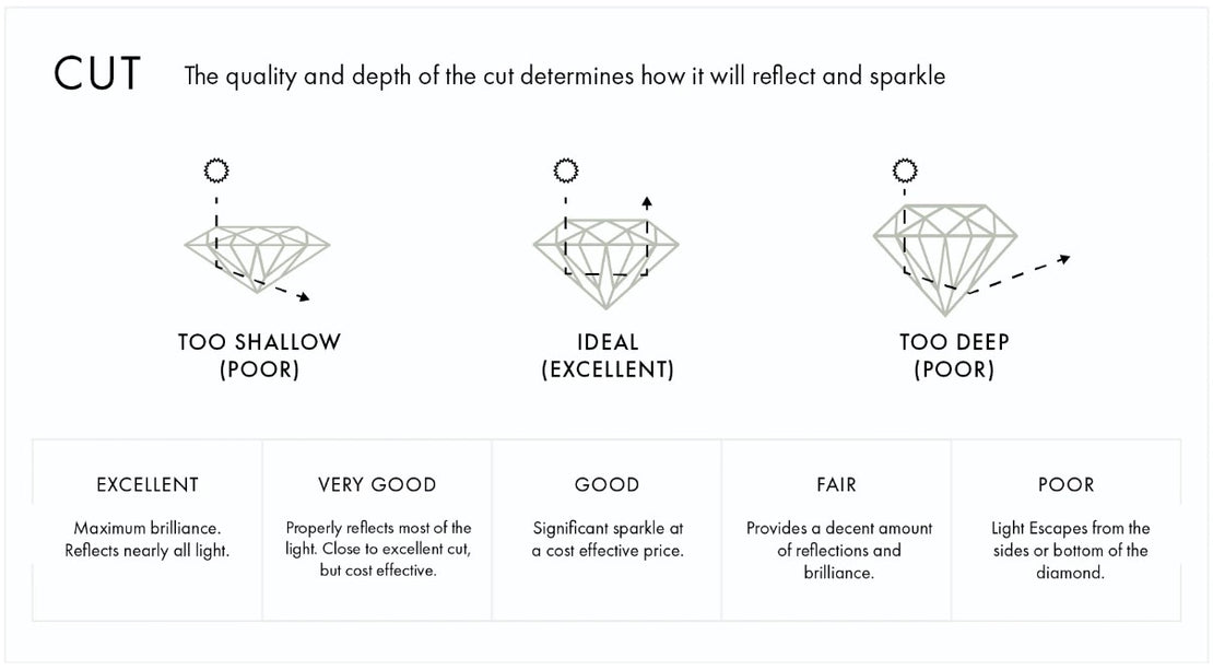 Il taglio è una componente fondamentale del diamante per garantire le giuste proporzioni, simmetrie e lucidatura. La qualità del taglio dipende dalla bravura del tagliatore, i tagliatori diretti di "duomo diamanti" con esperienza pluridecennale sono considerati tra i migliori al mondo.