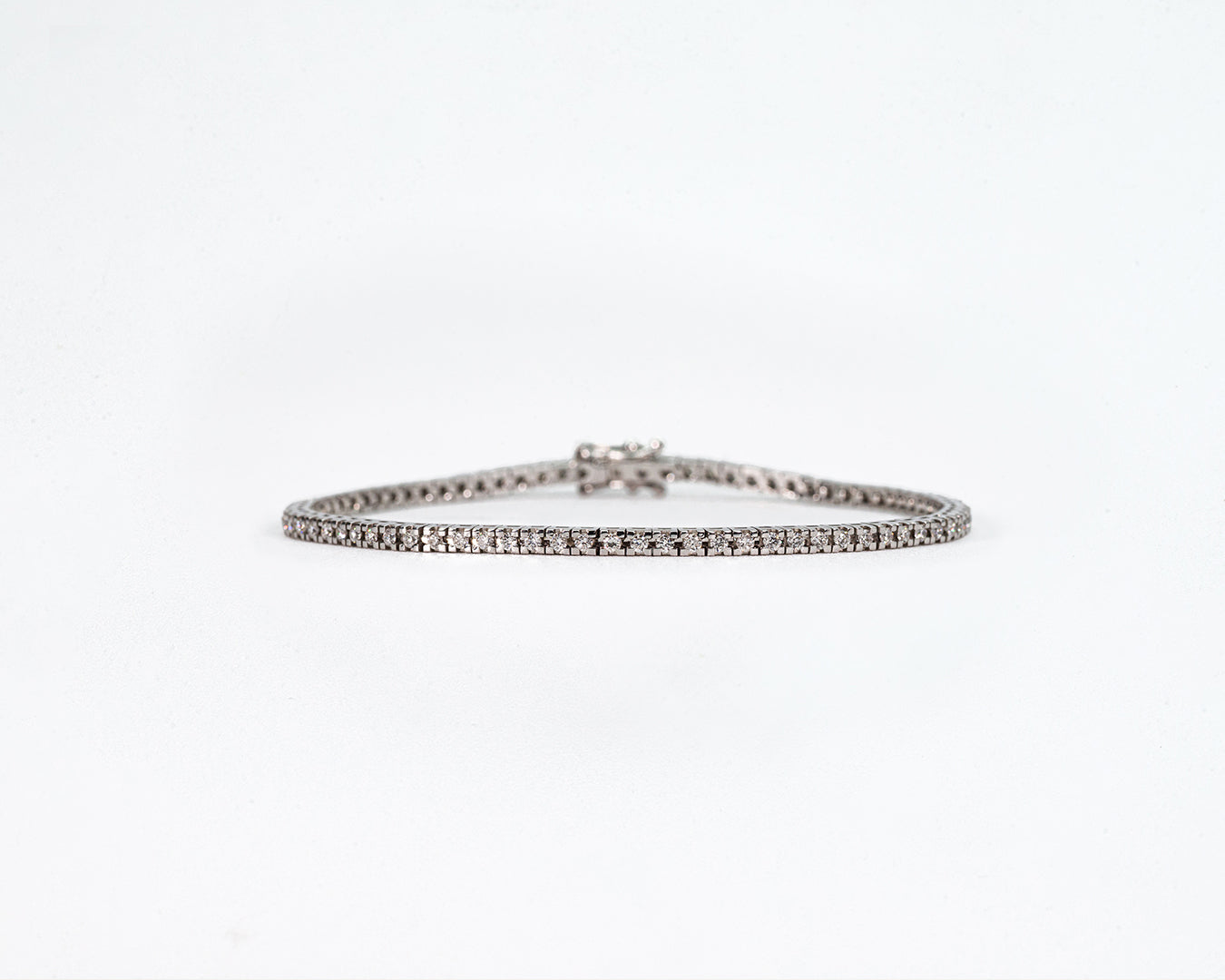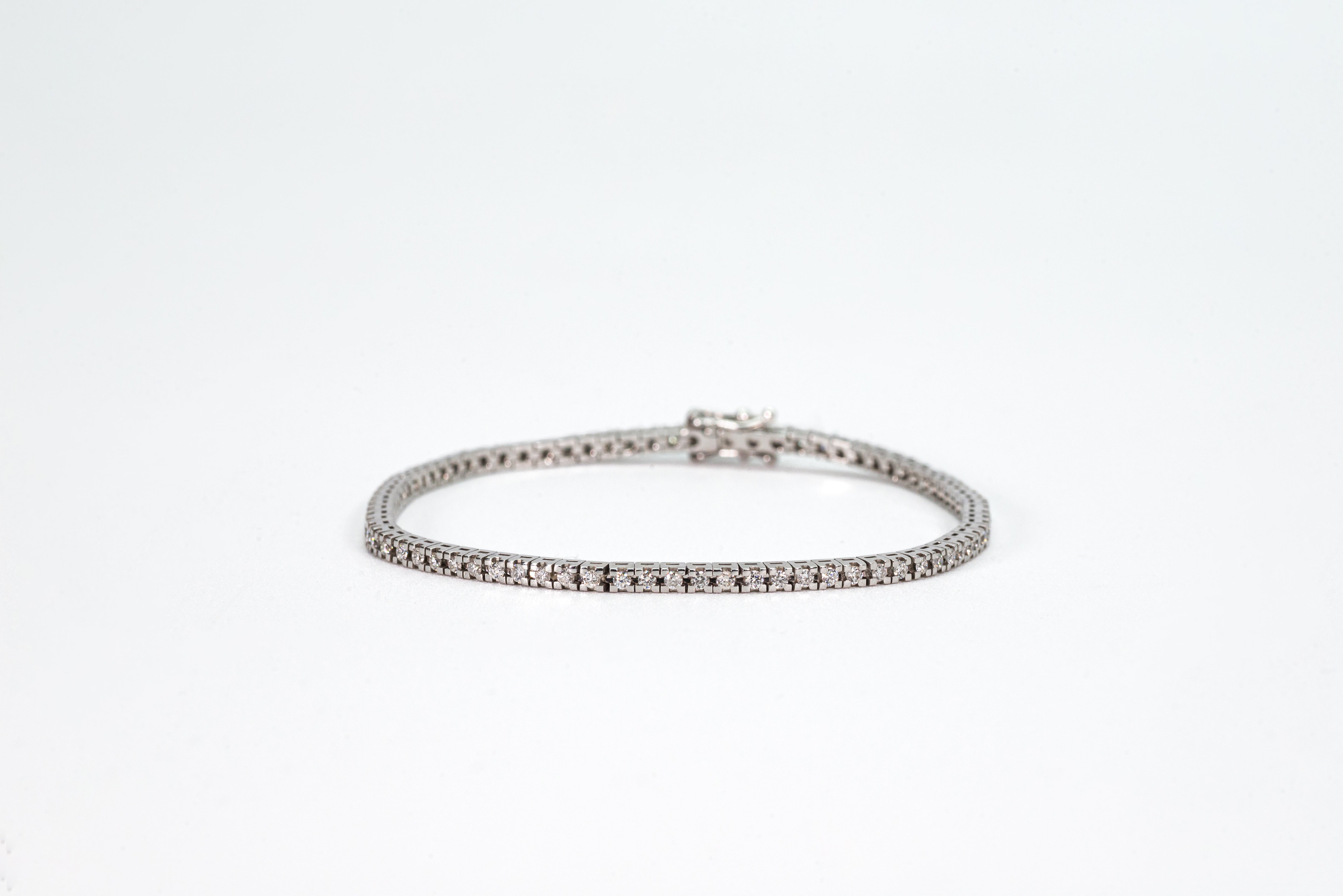 Bracciale tennis in oro bianco 18kt e diamanti taglio brillante per carati da 1,26 D VS a 10 D VS. Questo tennis realizzato a mano in Italia presenta una struttura diamantata per dare risalto alla brillantezza dei diamanti puri D color, la più alta qualità possibile per i diamanti, creando un effetto di luci e riflessi unico. Realizzato a mano in Italia