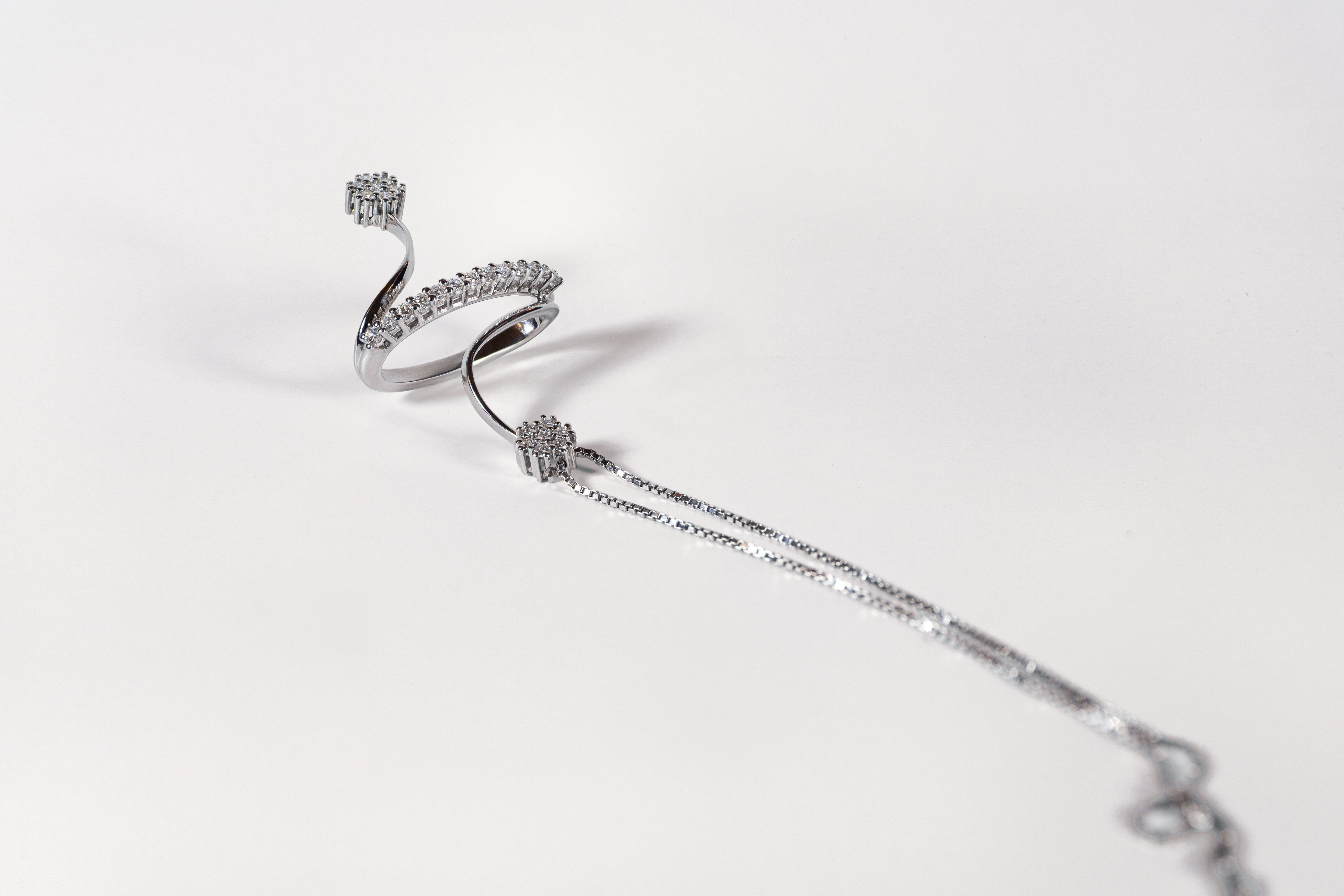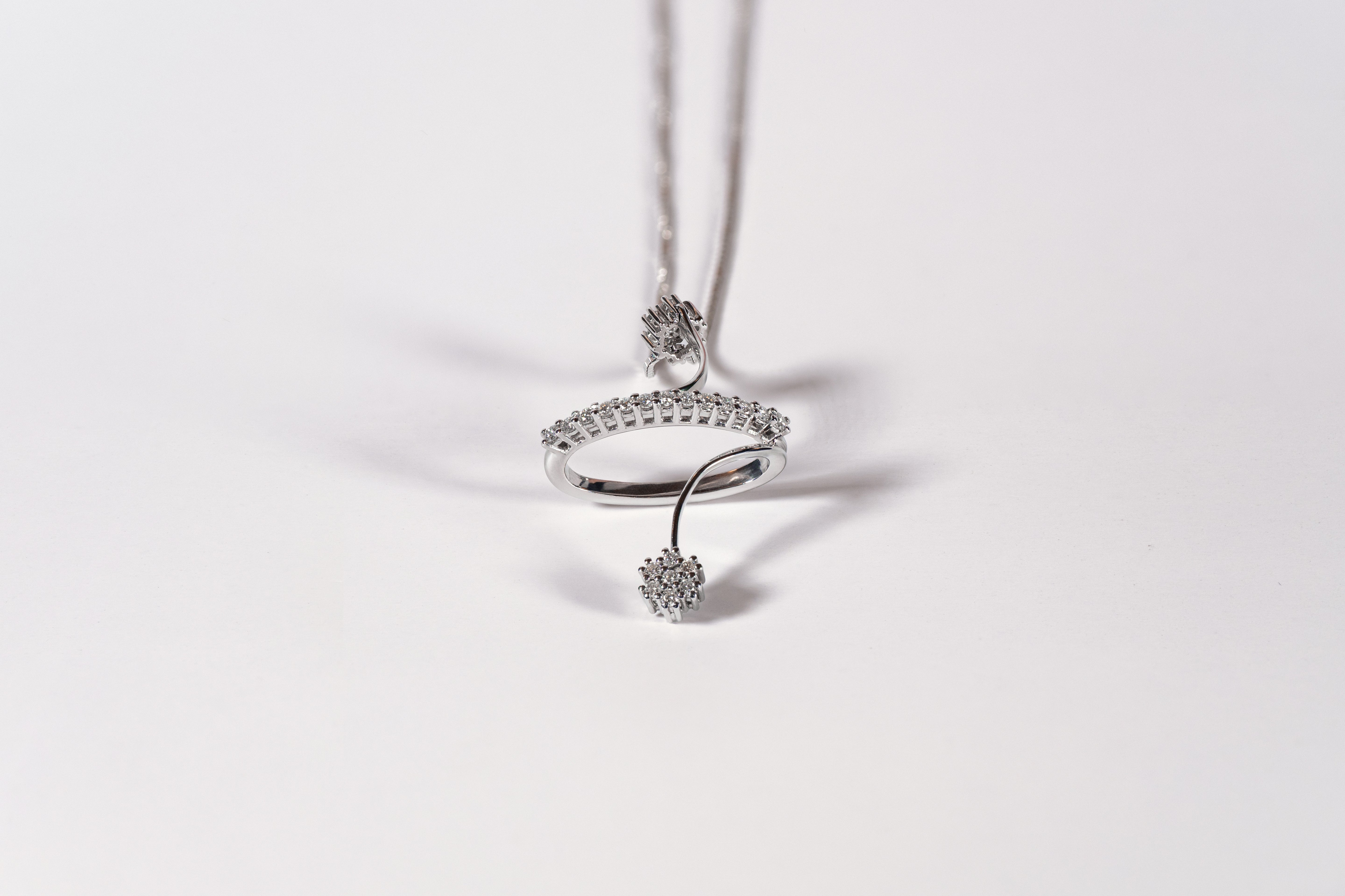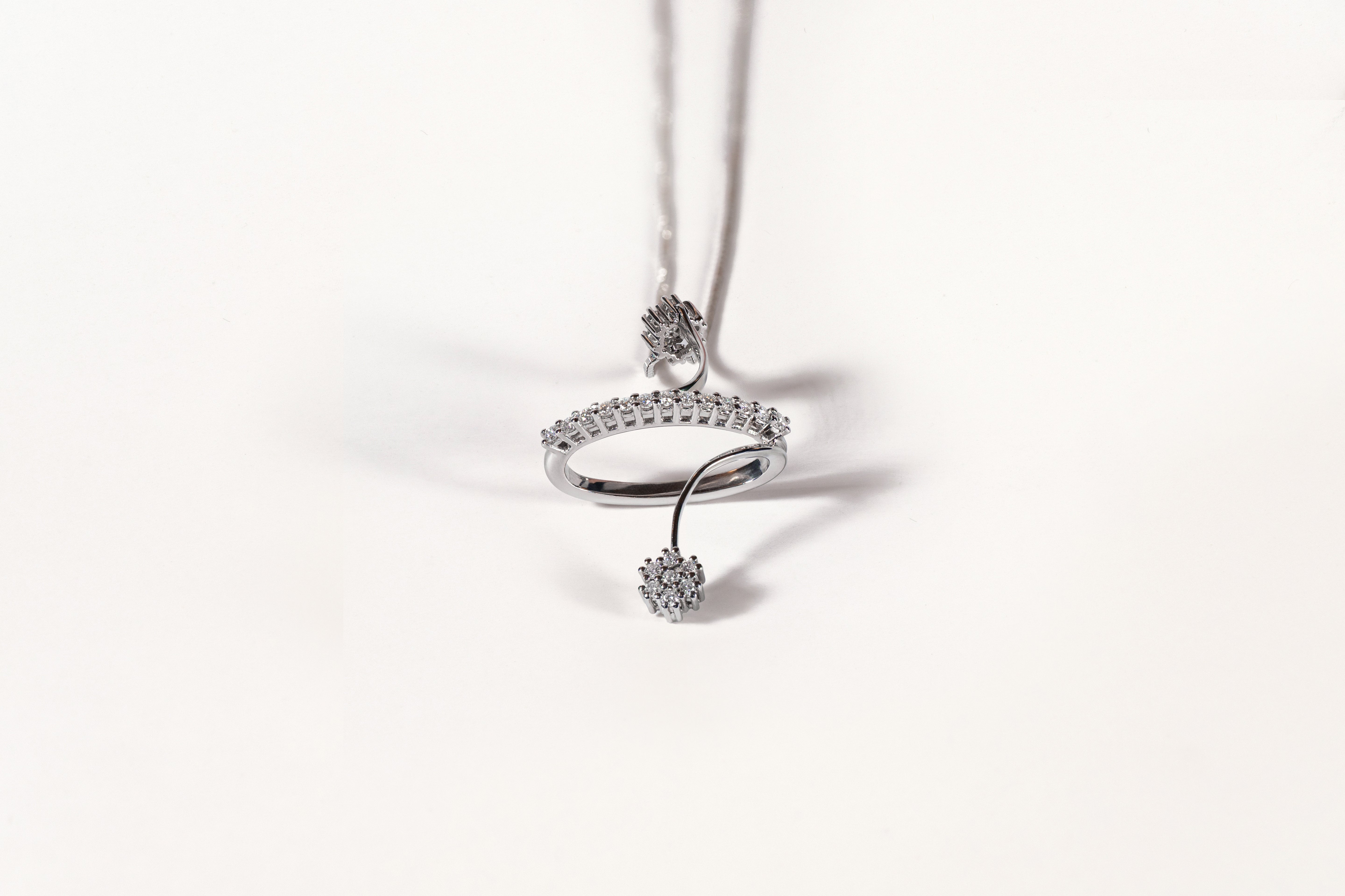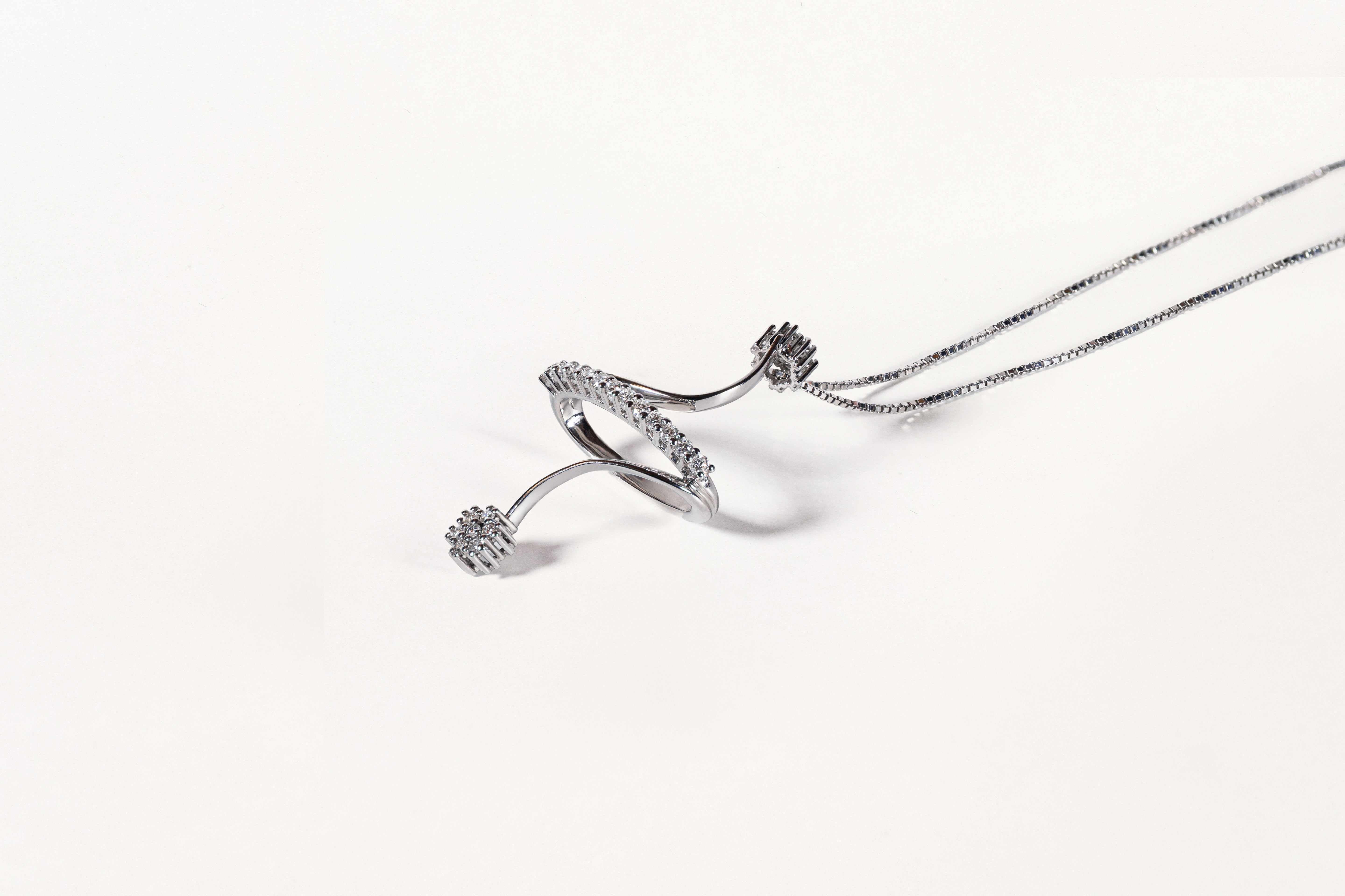 La collana Double Radiant in oro bianco 18kt con ciondolo di diamanti è studiata per esprimere forza e rinascita. Il nodo centrale in diamanti per 0,36 ct. simboleggia l'equilibrio perfetto tra i due poli, mentre il suo design sinuoso e sollevato esalta il decoltè. Con questa collana, sarai sempre al centro dell'attenzione con stile e raffinatezza.