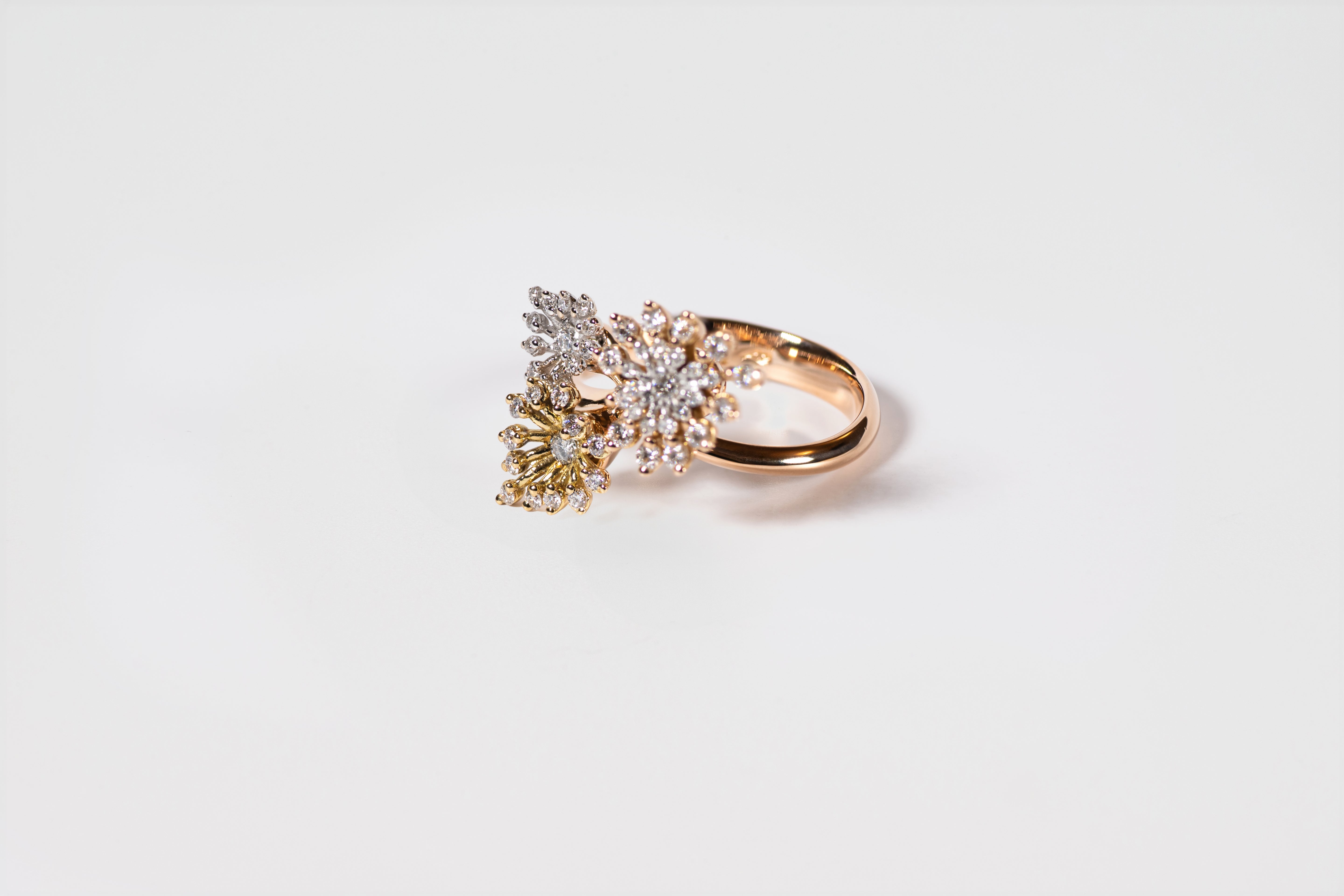 L'Anello Spring Flower è un gioiello unico in oro 18kt che emana luce grazie ai suoi 0,60ct di diamanti tenuti da griffes. Con i suoi 6,40gr di oro lavorato interamente a mano, è un simbolo di eleganza e primavera. Porta con te la luce e la bellezza di questo anello unico.