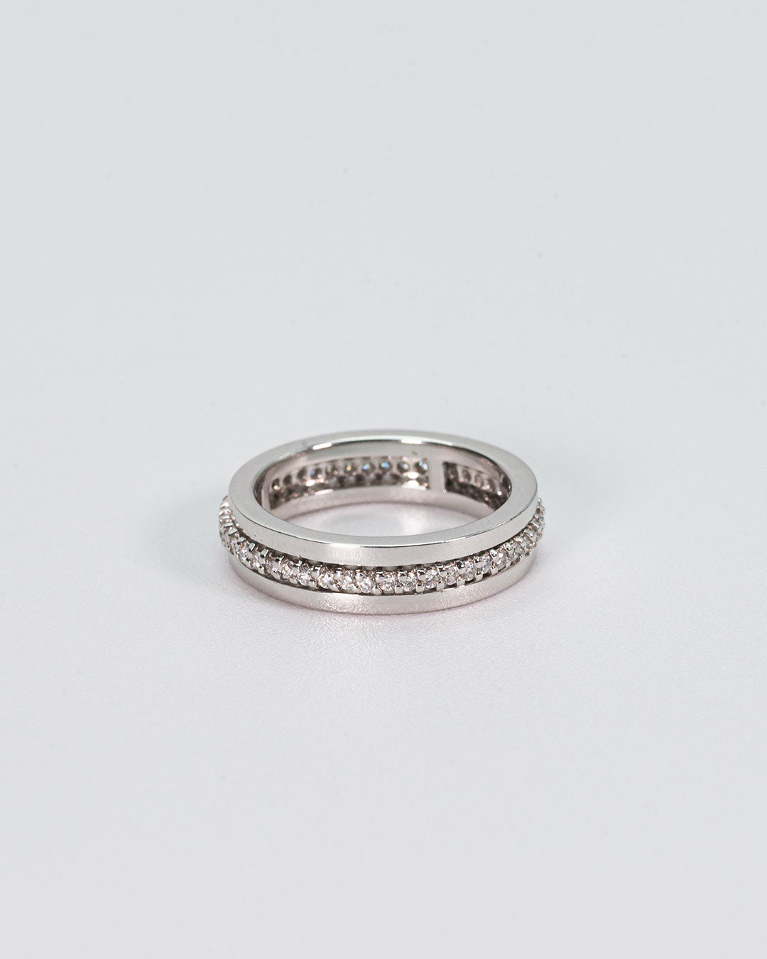 Anello in oro bianco 18 kt e diamanti da 0,42 carati. Questo anello è costituito da una base fissa in oro su cui si innesta centralmente una fascia rotante, sempre in oro 18kt, effetto Spinner tempesta di diamanti incastonati a griffe. La rotazione di questa fascia lo rende un anello perfetto per alleviare i momenti stressanti delle nostre vite frenetiche, basterà infilarlo e fare scorrere lo spinner con il proprio pollice, diventerà il tuo vizio preferito e il tuo migliore alleato.