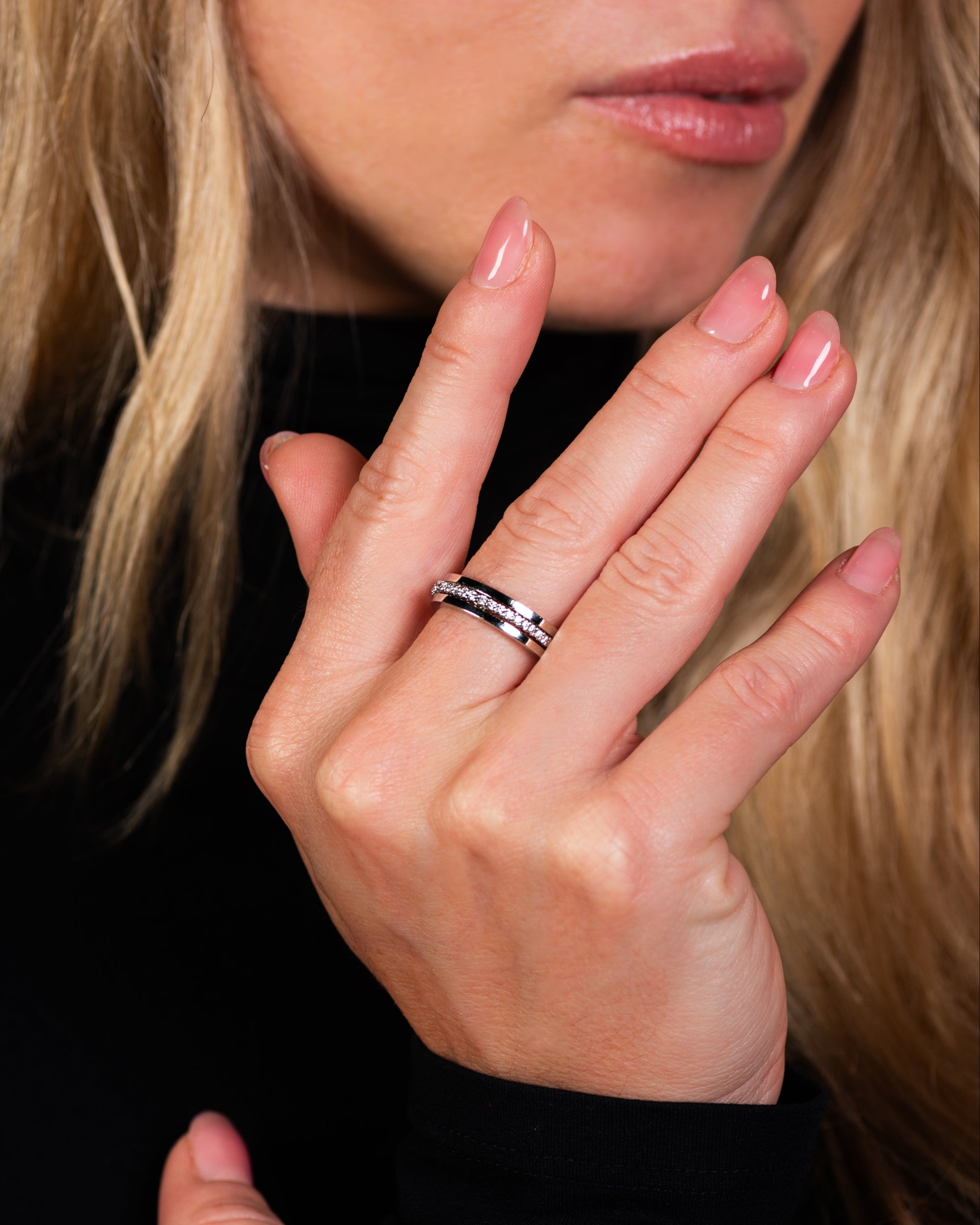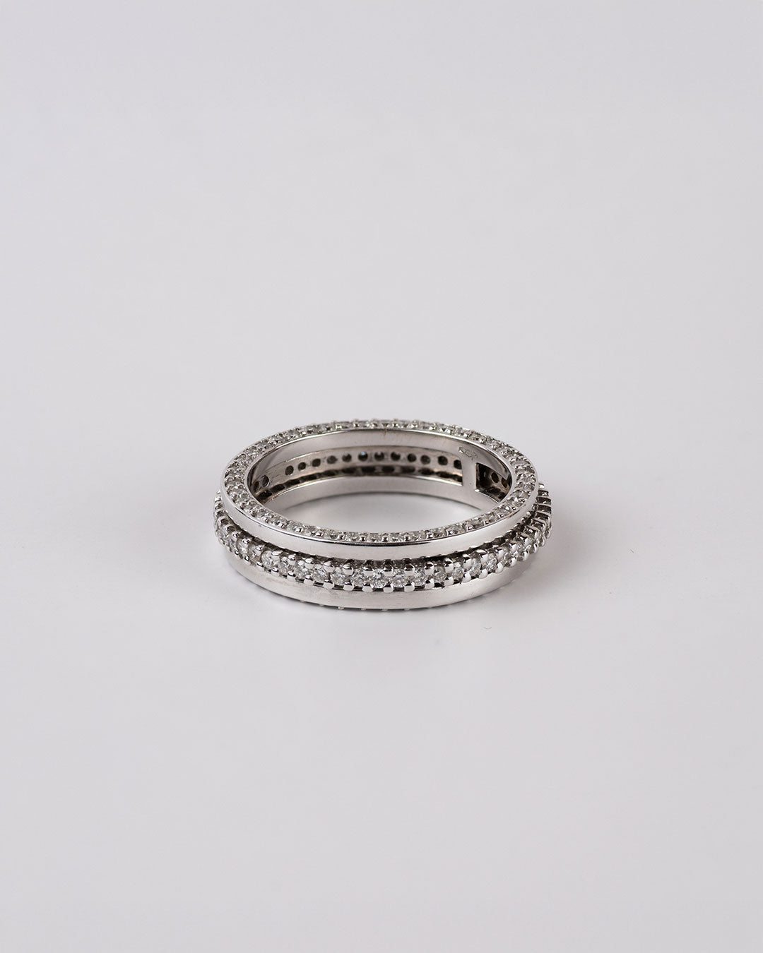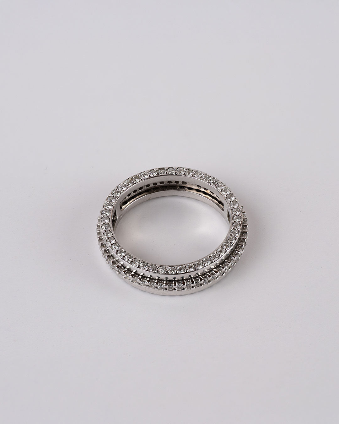 Anello in oro bianco 18 kt e diamanti da 0,42 carati. Questo anello è costituito da una base fissa in oro su cui si innesta centralmente una fascia rotante, sempre in oro 18kt, effetto Spinner tempesta di diamanti incastonati a griffe. La rotazione di questa fascia lo rende un anello perfetto per alleviare i momenti stressanti delle nostre vite frenetiche, basterà infilarlo e fare scorrere lo spinner con il proprio pollice, diventerà il tuo vizio preferito e il tuo migliore alleato.